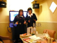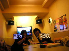 | 今年は、新たにカラオケの点数で競い合うゲームをしました。 其々に罰ゲームを二つ考えてきて…。 生き残れるのは一人だけ! 其々が考えてきた罰ゲームを紹介! ヰ流:@カラオケでモノマネで歌う Aアニソンをアニメ声で歌う 藍々:@ホームページのTOP画ソロ。年末まで。 A年末レポート皆の〆切−3日&+500字 妃咲:@自分の苦手な(恥ずかしい)歌を歌う Aボイスチェンジをして歌う |