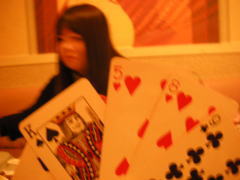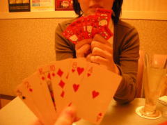 | トランプをして時間を潰す二人。 とりあえずババ抜きしてみる。 …が、 1と3と4と7が4枚揃っていない。 その事実に気付く。 |