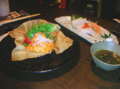 イカソーメン(右)と エビのぷりぷりマヨ炒め(左) エビのは美味しくて、 2回も注文したよー!w |