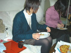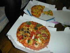 待ち合わせが12時だったので、 昼ごはんは、藍々家で、 ピザを頼んで食べました。 お腹いっぱい食べた…vv 腹ごしらえをしなきゃ、 やってらんないしね! |